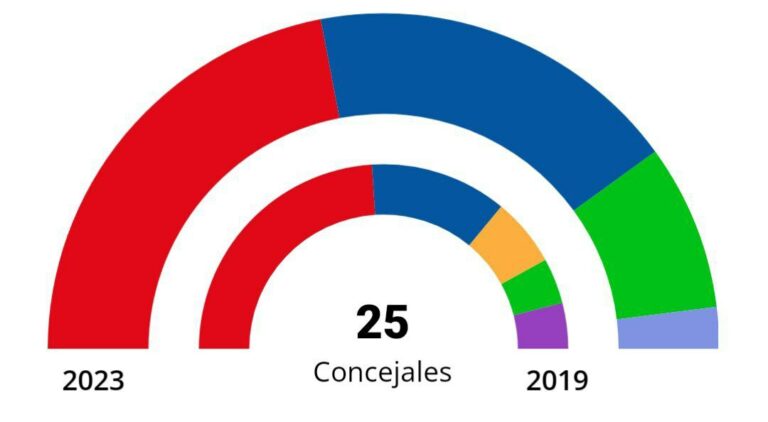 Sin embargo, el partido más votado en estos comicios del 28 de mayo es el PSOE, que se queda con 11 ediles -1 menos que en 2019- al obtener el 38,74% de los votos.
