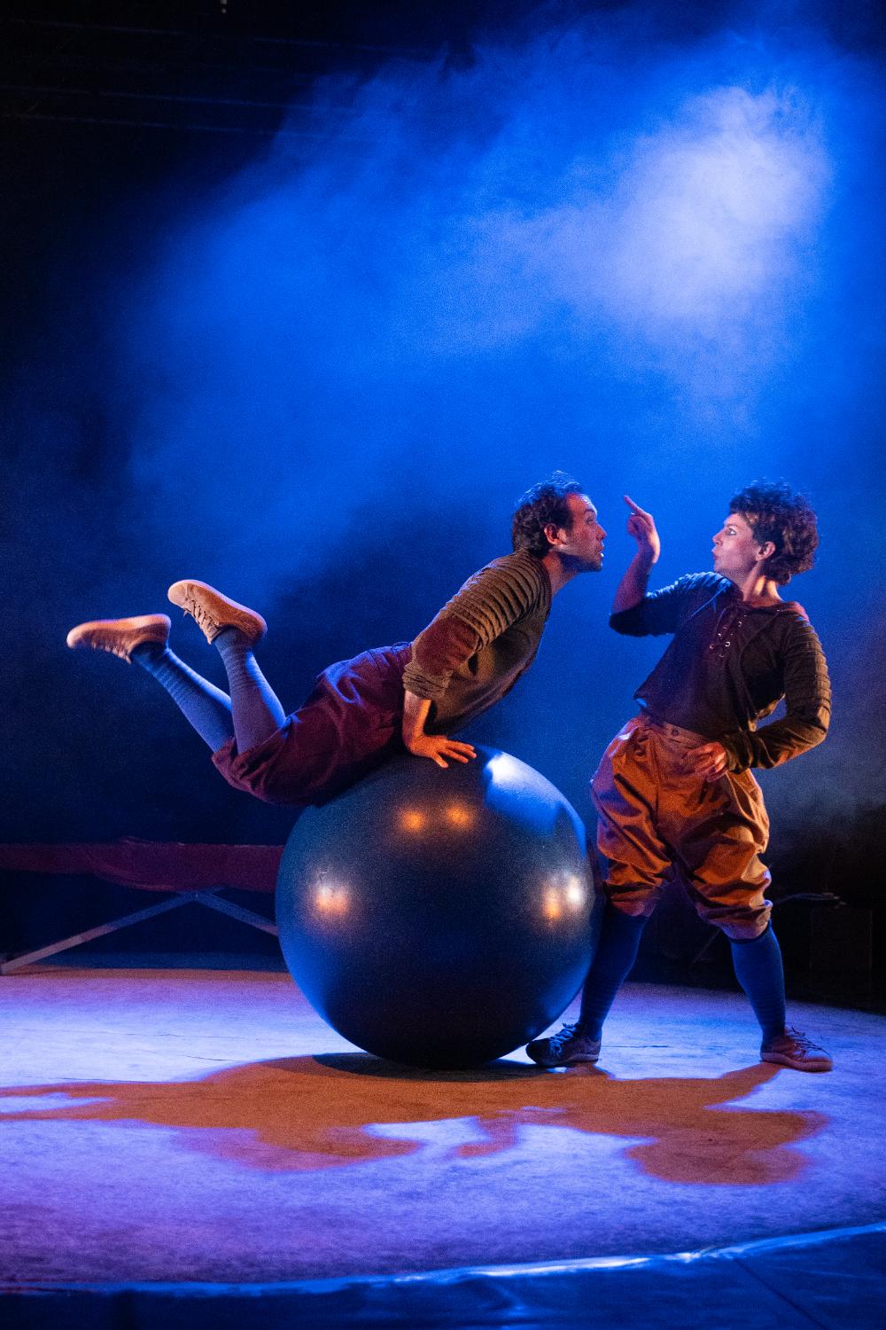 Desde el primer instante, el espectáculo deja claro que no busca recrear un libro de historia ni ofrecer una lección empaquetada, sino construir un puente entre tiempos. El escenario, casi desnudo, se vuelve un territorio sagrado donde el objeto cotidiano deviene símbolo y el símbolo se convierte en un cuerpo vivo. Objetos simples, como unas tablas de planchar y unas cuerdas, se transforman en catalizadores de emoción, tensión y humor, demostrando que lo ordinario puede despertar el interés teatral y sostener la mirada del espectador. Allí, los intérpretes Lola Sánchez, Dani Jaén, Roberto Calle y Cristina Zarandieta despliegan un repertorio físico y expresivo que recuerda a los cómicos del Siglo de Oro, esos actores-mensajeros que viajaban por aldeas y ciudades llevando consigo el pulso de un país entero. Su trabajo incorpora acrobacias, malabares y una presencia física exuberante que conectan con la tradición del teatro popular y del circo, elevando el juego escénico a un contagio teatral que se extiende rápidamente al público. Ellas y ellos sostienen la arquitectura invisible de una propuesta que juega con la máscara, la acrobacia, la música, el gesto y la verdad del clown como si fueran engranajes de una misma máquina desbordante.