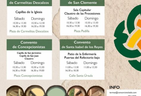 Toledodiario.es recopila estos eventos y actividades a título informativo por lo que no se responsabiliza de las modificaciones realizadas por sus organizadores. Recomendamos confirmar los detalles con los organizadores del evento.