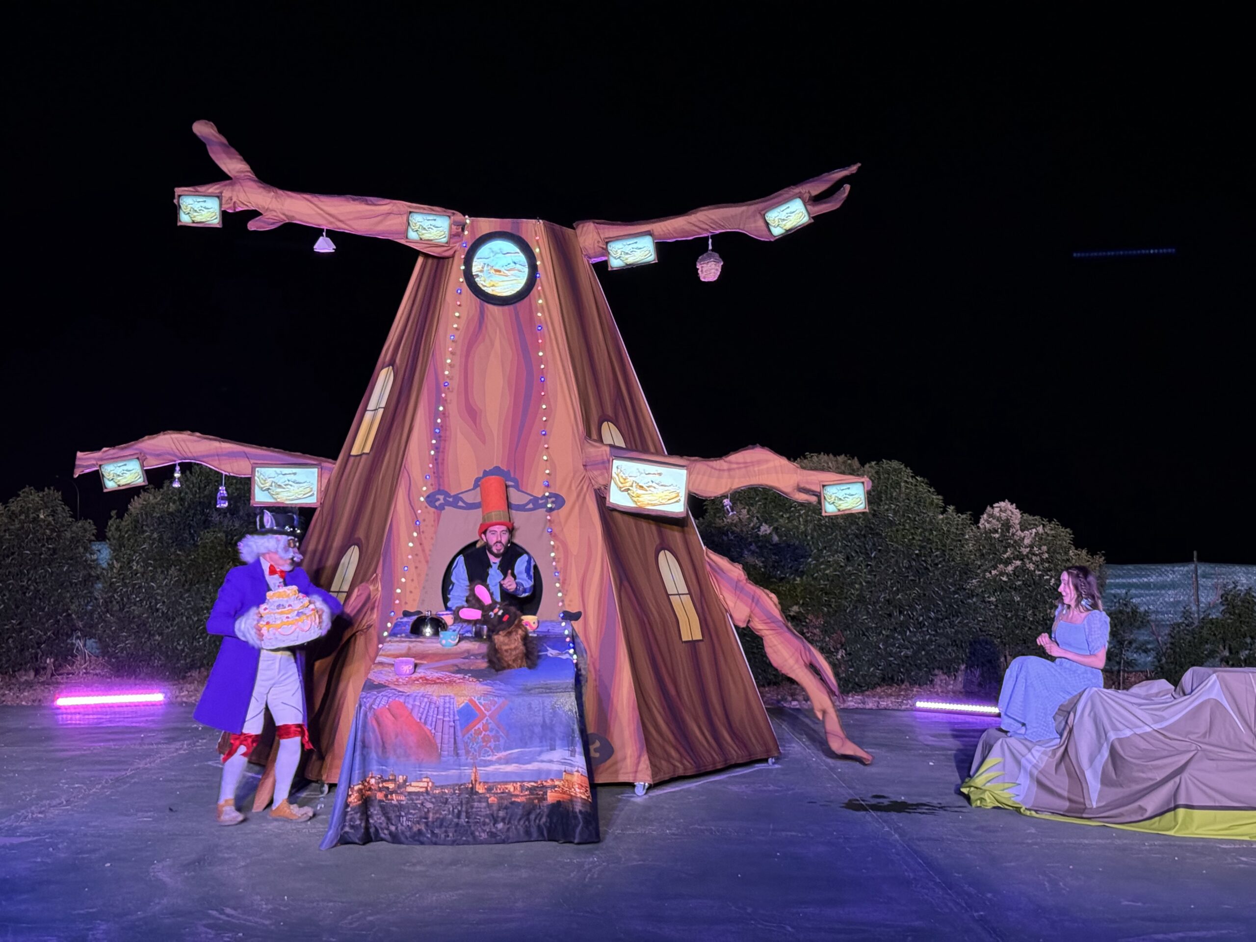 Ese diálogo entre tradiciones no enfría la función. La vuelve más rica. La vuelve más desternillante, incluso. Porque el montaje tiene gracia, tiene velocidad, tiene una alegría muy bien entendida del cambio continuo. Hay apariciones súbitas, mutaciones, sorpresas visuales, irrupciones que ensanchan el espacio y devuelven al escenario esa condición de caja de asombros que el teatro familiar debería proteger siempre. También la presencia de algún gigante contribuye a esa sensación de desproporción jubilosamente infantil, de mundo agrandado, de realidad corrida de su tamaño ordinario. Y, sin embargo, nada se dispersa. Todo parece estar al servicio de una misma idea: mostrar que la imaginación no es un añadido decorativo, sino la corriente central que atraviesa los libros y, cuando el teatro acierta, vuelve a atravesar la sala entera.