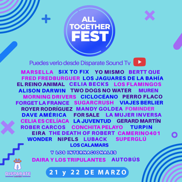 "En estos momentos tan difíciles para todos, Disparate Sound quiere sumarse a la iniciativa de #yomequedoencasa y mantener a todos unidos a través de la música, tomemos conciencia, seamos responsables y solo juntos venceremos está situación, es el momento de estar 'all together' [todos juntos en castellano]", señalan desde la organización de este festival.