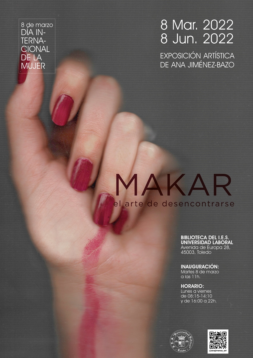‘MAKAR el arte de desencontrarse’ es la tercera exposición de esta toledana en su ciudad. Podrá verse hasta el próximo 8 de junio de lunes a viernes, en horario de 8.15 a 14.15 horas y de 16 a 22 horas.