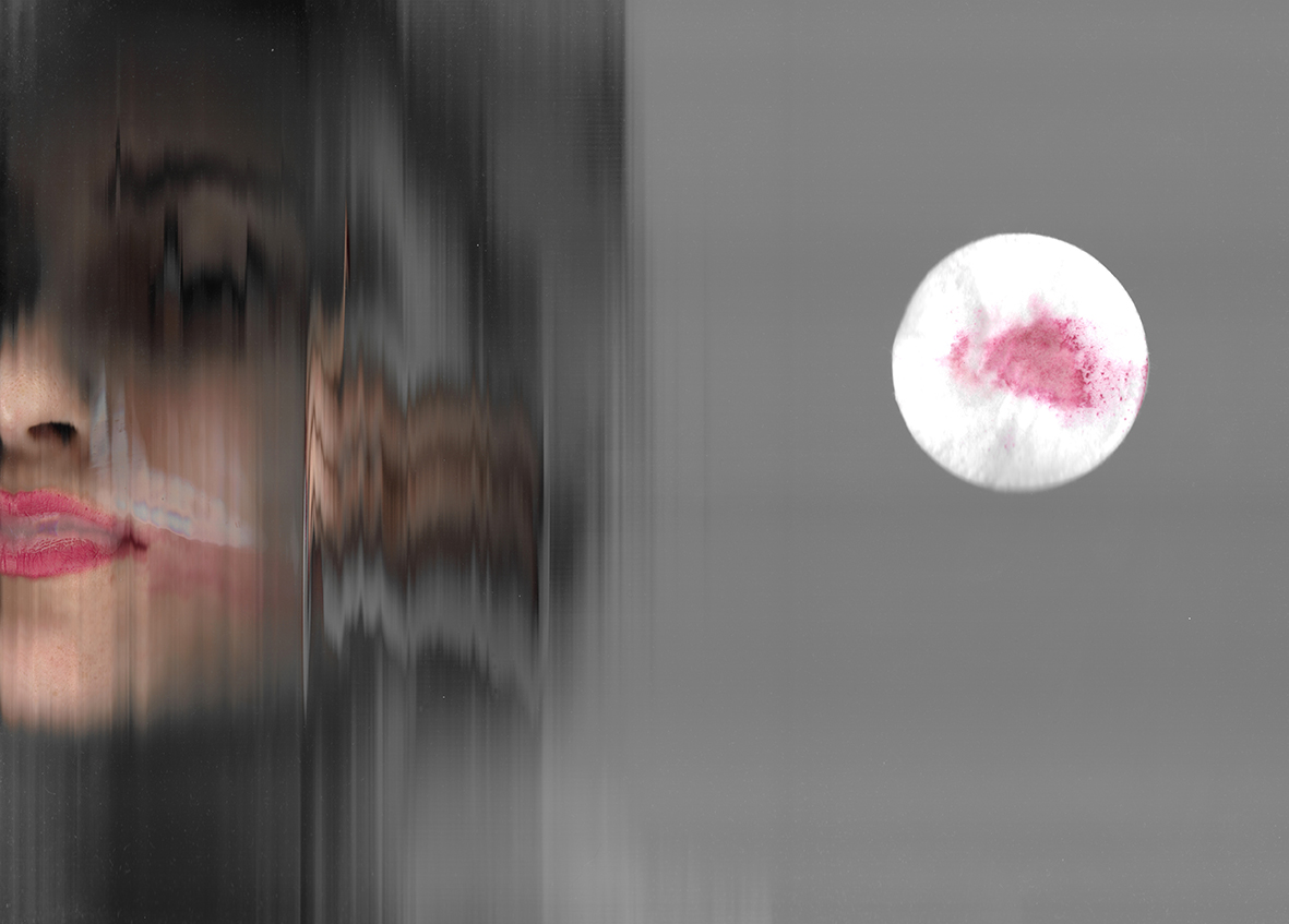 “A través del escáner digitalizo restos de maquillaje que se convierten en esa agresión”, nos explica. “Utilizo esta técnica bastante, porque tiene algo interesante: la inmediatez. Me gusta mucho porque te permite capturar ese instante, un momento determinado, pero también utilizo otra técnicas”.