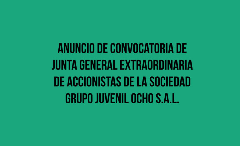 ANUNCIO DE CONVOCATORIA DE JUNTA GENERAL EXTRAORDINARIA DE ACCIONISTAS DE LA SOCIEDAD “GRUPO JUVENIL OCHO, S.A.L.”