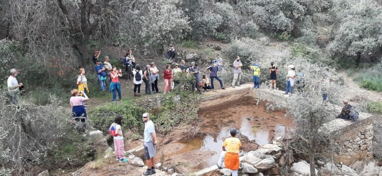 Ya en la Fuente del Moro comprobaron también la gran biodiversidad de la zona (encinas, cornicabras, jazmines, espinos negros o torviscos entre otras docenas de especies) y escucharon la leyenda que se cuenta sobre lugar de la voz de Iván Dorado (dinamizador del proyecto para un barrio del Polígono más sostenible y amigable con la vida 'Biobarrio').