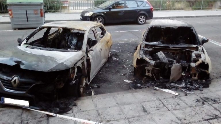 Según informan fuentes de la Delegación del Gobierno, el fuego se inició en uno de los tres vehículos y posteriormente se propagó a los otros dos, provocando explosiones en los mismos y requiriendo de la presencia de los bomberos, quienes consiguieron apagar el fuego una hora más tarde.