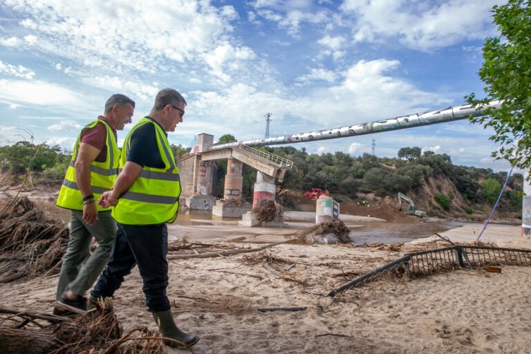 Según detalla la consejera, en el embalse de Picadas se está reforzando el viaducto que cruza el río Perales y que soporta la conducción de la tubería de abastecimiento de Picadas-Almoguera, que fueron gravemente dañados tras las tormentas de este pasado domingo por la DANA, lo que ha provocado la paralización del abastecimiento a 71 pueblos que recibían agua por este sistema a los que se les está suministrando por sistemas alternativos.