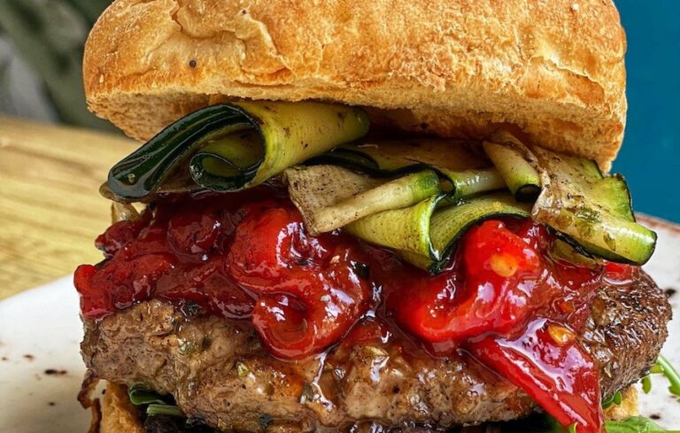 El restaurante vegano Street & Soul ha creado una hamburguesa para el festival 'Música por el Tajo', de conmemoración del 50ª aniversario de la prohibición del baño en el río a su paso por Toledo. Cuenta con ingredientes típicos de las huertas de ribera del Tajo como aceitunas, calabacín, cebolla, pimiento, orégano o berenjenas.