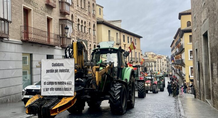 El sector primario grita por su supervivencia en Toledo bajo la lluvia y sobre el tractor: "Si el campo no produce, la ciudad no come"
