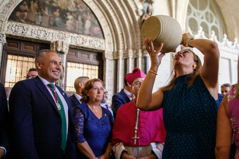Vuelve a arraigar y a tomar fuerza la tradición de beber el 'agua de la virgen' cada 15 de agosto en Toledo. Tras la pausa que se llevó a cabo por la pandemia y tras retomar esta costumbre el año pasado, ciudadanía y políticos han vuelto a darse cita en la Catedral Primada de la ciudad para beber de los botijos del templo, una tradición muy arraigada en la capital castellanomanchega con motivo de la festividad de la Virgen del Sagrario, su patrona.