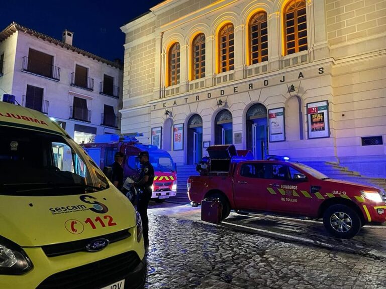 El Teatro Municipal de Rojas ha sido escenario este lunes a última hora de la tarde de un simulacro de incendio en el que han participado Bomberos del Ayuntamiento de Toledo, Policía Local, Protección Civil, agentes del Cuerpo Nacional de Policía y personal sanitario del Sescam y del 112.