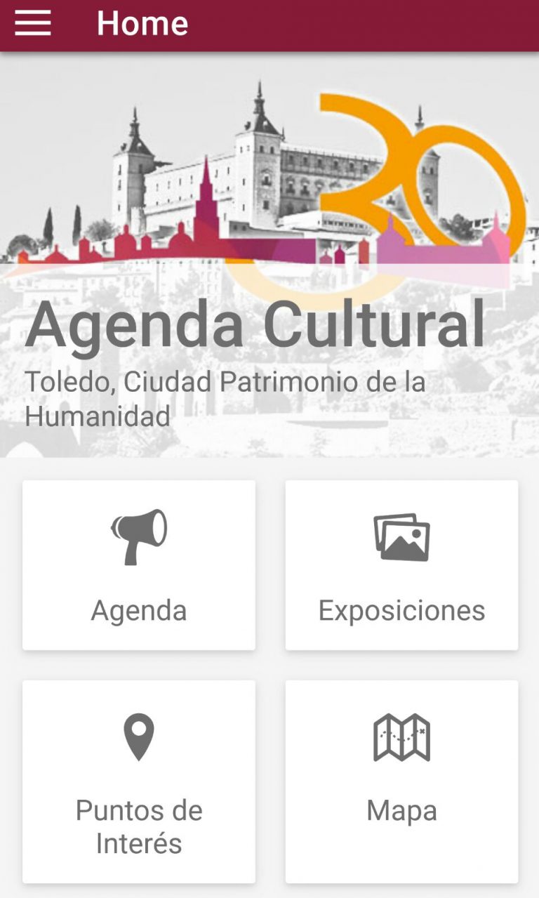 ‘Agenda Cultural de Toledo’ ofrece la posibilidad de acceso a cuatro categorías: Agenda, Exposiciones, Puntos de Interés y Mapa. La primera de ellas, permite el acceso a la información mensual relacionada con exposiciones, visitas, talleres, entregas de premios, cine, conferencias, festivales o conciertos, entre otros. En segundo lugar, el acceso a Exposiciones ofrece información acerca de ciclos expositivos permanentes o temporales en la ciudad.