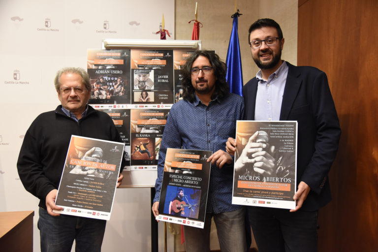 El director general de Programas, Formación Profesional y Atención a la Diversidad, Amador Pastor, ha adelantado que la segunda edición del Encuentro de Canción de Autor organizado por el Gobierno de Castilla-La Mancha, en colaboración con la Asociación Cultural ‘Kali Panoa’ y los ayuntamientos de Ciudad Real y Toledo, contará entre sus novedades con ‘Micros Abiertos’. Así lo ha precisado en la rueda de prensa de presentación del evento en la que ha estado acompañado del director del encuentro, Víctor Claudín; y del concejal de Juventud del Ayuntamiento de Toledo, Diego Mejías.