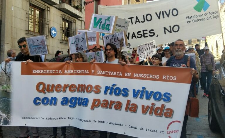Más de 60 colectivos han convocado una manifestación en Toledo aprovechando la celebración esta semana del Día Mundial del Agua. Casi medio millar de manifestantes han mostrado su rechazo a la situación por la que atraviesan los ríos de la cuenca del Tajo, donde la situación es “especialmente preocupante”, según los organizadores, capitaneados por la Plataforma de Toledo en Defensa del Tajo.