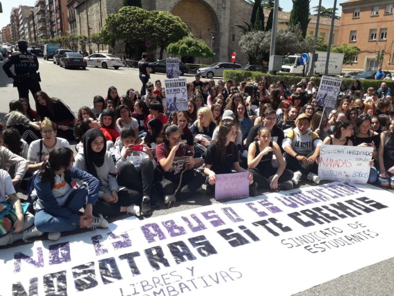 La indignación que provocó de manera generalizada la sentencia contra 'la manada' sigue viva y este jueves se ha manifestado a través de la voz del colectivo estudiantil, que había sido convocado a una huelga para apoyar las concentraciones que se han llevado a cabo en España como rechazo a la decisión judicial de la Audiencia de Navarra y, también, para criticar la difusión que se ha realizado de los datos personales de la víctima