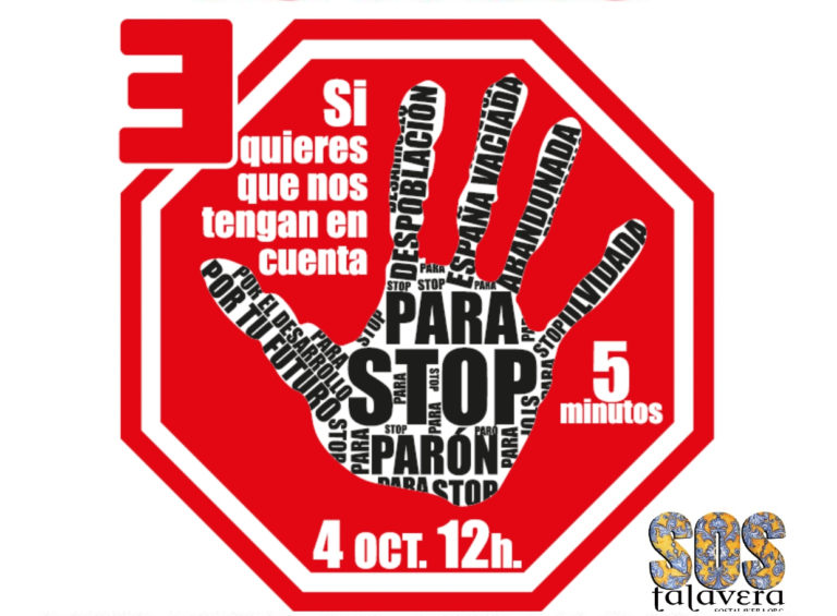 La Asociación SOS Talavera y Comarca ha enviado una carta abierta a los alcaldes y alcaldesas de los ayuntamientos de las comarcas de la Sierra de San Vicente, la Jara, la Campana de Oropesa y Talavera de la Reina, en la que les pide que se sumen al paro simbólico de cinco minutos que se va a realizar el próximo 4 de octubre, a las 12.00 horas, por la España vaciada.