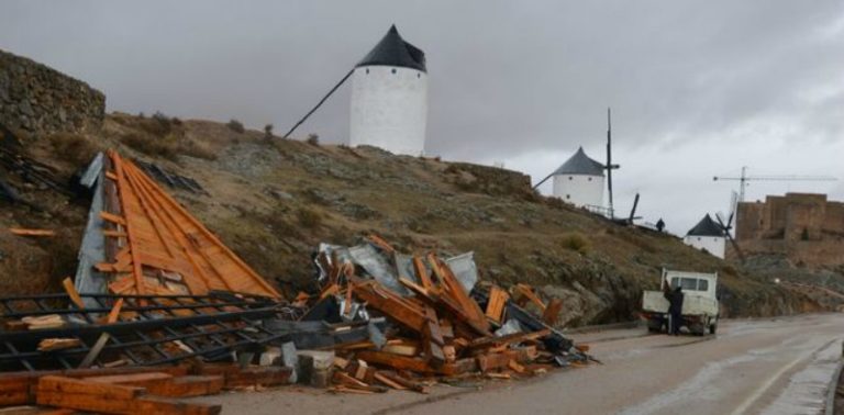 El municipio toledano de Consuegra ha consumado su petición al Gobierno central para declarar el municipio como "zona afectada gravemente por emergencias de protección civil" tras los daños ocasionados la semana pasada por el temporal de viento, que azotó a la localidad tanto en los históricos molinos que coronan el Cerro Calderico como en la instalaciones municipales.