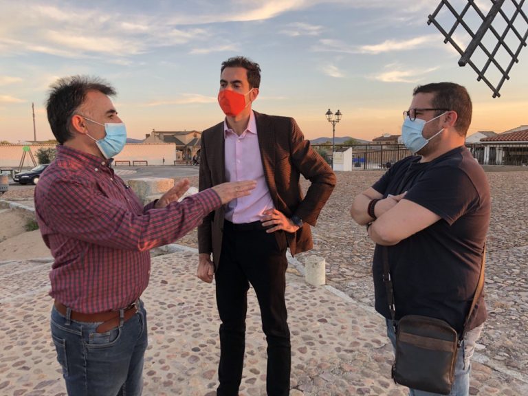 Comendador, acompañado de los concejales de Cs en Camuñas Juan Ángel Palomo y Rubén Puche, ha compartido impresiones con vecinos que sufren las consecuencias de la pandemia en un municipio considerado como "el de menor renta de la provincia de Toledo, según un estudio de la Agencia Tributaria publicado en 2018".