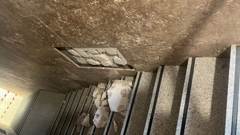 La Central Sindical Independiente y de Funcionarios (CSIF) exige la reparación inmediata de las deficiencias que presenta el Palacio de Justicia de Toledo tras la caída el pasado viernes de una pesada pieza cerámica en el tramo interior de escalares de acceso a la primera planta.
