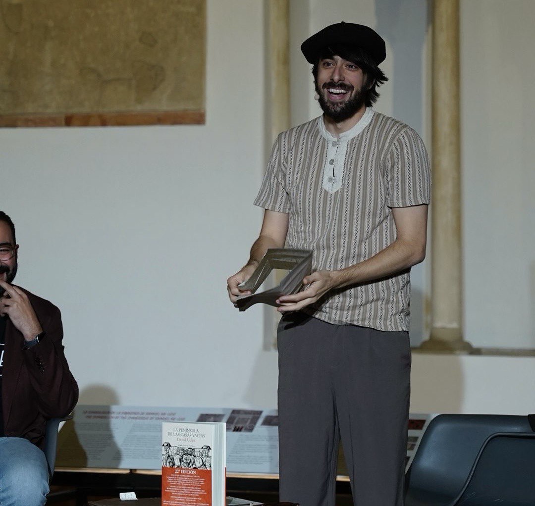 Durante la conversación, el autor abordó el tema de la despoblación, observando que España sigue siendo una "península de casas vacías". Mencionó ejemplos contundentes, como que el 90% de los aragoneses viven en Zaragoza. El escritor ve esta realidad en su propio pueblo, cuya población ha disminuido drásticamente (de 10.000 habitantes en la época de la guerra a unos 4.000 y pico en la actualidad).