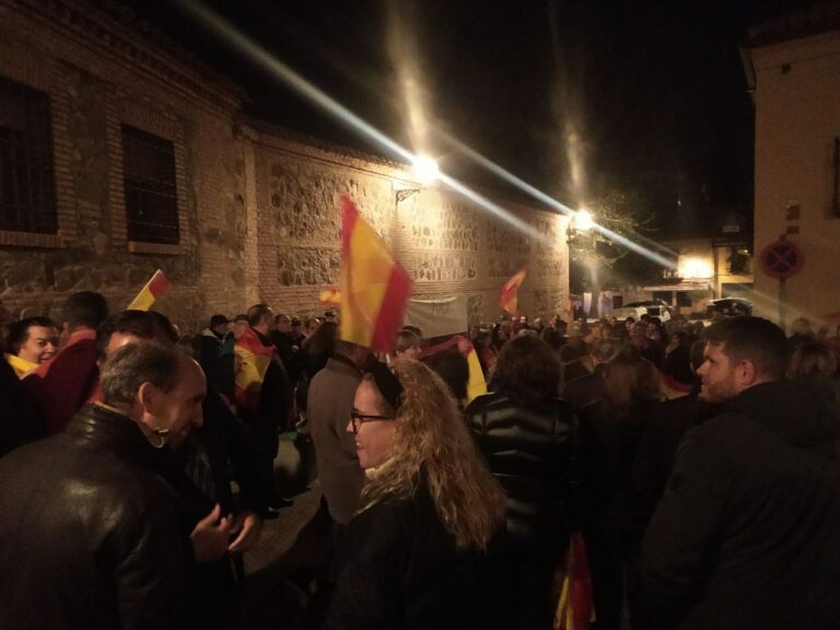Las protestas que se estaban produciendo en los últimos días en la calle Ferraz en Madrid ante la posibilidad de que se apruebe una ley de amnistía para los implicados en el procés catalán, y que este lunes ha acabado con cargas policiales ante la violencia de algunos manifestantes, se ha trasladado también, en menor medida, a la sede del PSOE de Toledo en Santa María la Blanca.