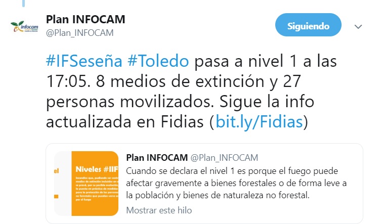 Asimismo, recuerdan que cuando se declara el nivel 1 es porque el fuego puede afectar gravemente a bienes forestales o de forma leve a la población y bienes de naturaleza no forestal.