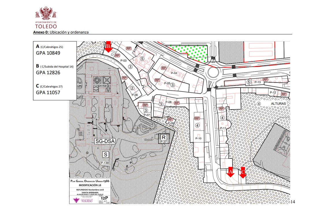 En concreto se trata de un inmueble de 942,17 m2 en Cabrahigos, nº25, para el que se estableció un precio de 1.784.672,61 euros. El Plan de Ordenación Municipal de Toledo asigna a la finca de este número un máximo de cuatro alturas más bajo cubierta vinculado.