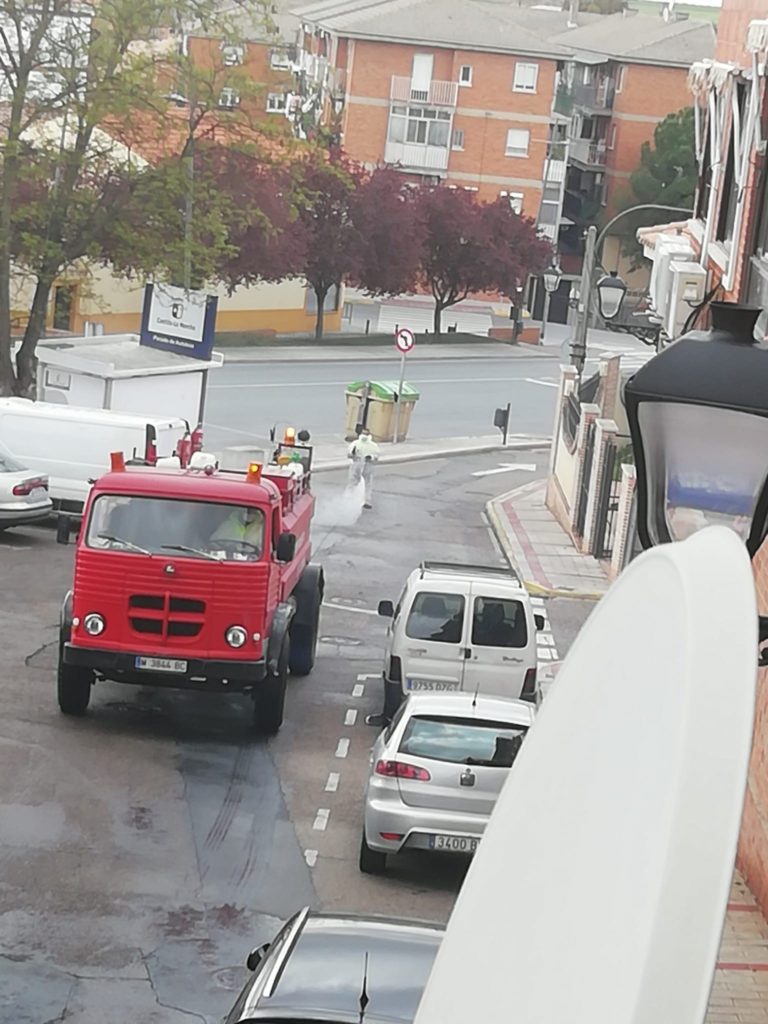 Personal municipal, a través de la Concejalía de Servicios Generales del Ayuntamiento de Illescas, lleva más de una semana realizando tareas de desinfección en todo el municipio, calles, mobiliario urbano y aceras. Zonas de especial tránsito como el Centro de Salud, las farmacias, centros comerciales, exterior de la Jefatura de la Policía Local y el cuartel de la Guardia Civil, se desinfectan diariamente. Lo mismo ocurre con las paradas de autobús que se reparten por todo el término municipal.
