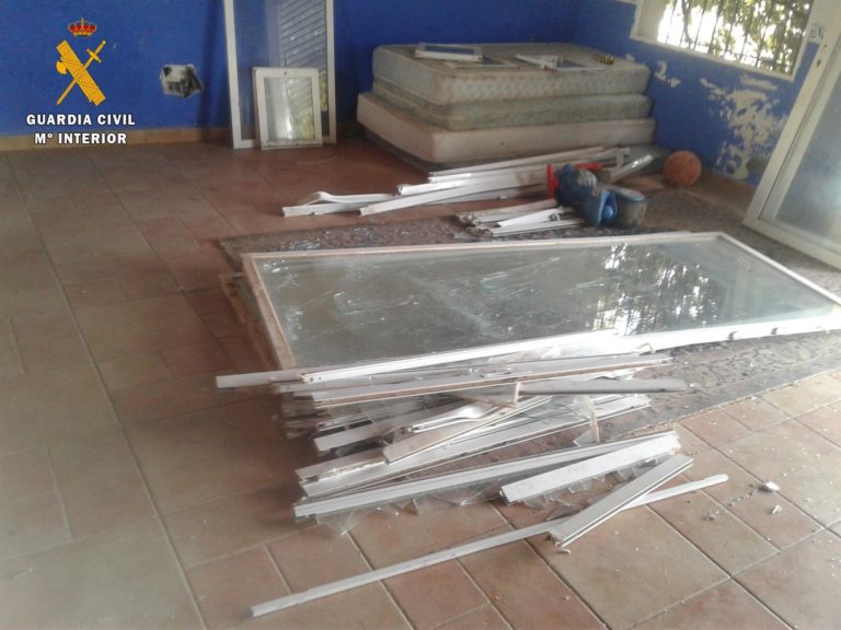Ambos cuerpos policiales de dirigieron desde sus respectivas posiciones en dirección a la vivienda y, una vez en el lugar, sorprendieron a tres individuos en el interior de la casa de campo. Los autores, que habían forzado la valla perimetral de la finca para acceder a la misma, en el momento de la detención, se encontraban en el interior de la casa y tenían desmontadas varias puertas y ventanas de aluminio, así como alguna farolas, todo ello dispuesto para ser cargado en el vehículo con el que llegaron al lugar.