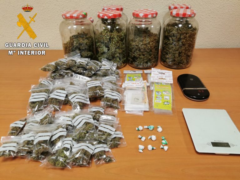 Seguidamente la Guardia Civil realizó un registro en la vivienda del responsable de ese local, donde igualmente se hallaron 37 dosis de marihuana, 960 gramos de esta sustancia en cogollos, 3 plantas de cannabis sátiva de grandes dimensiones, 7.400 euros y diferentes utensilios para su pesado, envasado y distribución.