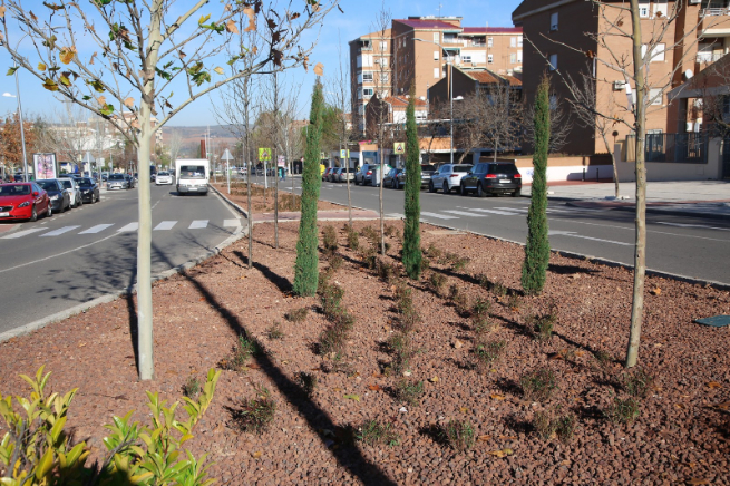 En esta zona ubicada en el entorno del nuevo Hospital Universitario de Toledo se han plantado 2.700 arbustos y 75 árboles y se ha adecentado toda la mediana de "una de las arterias principales del Polígono y que comunica a prácticamente todo el barrio", con una inversión de 50.000 euros.