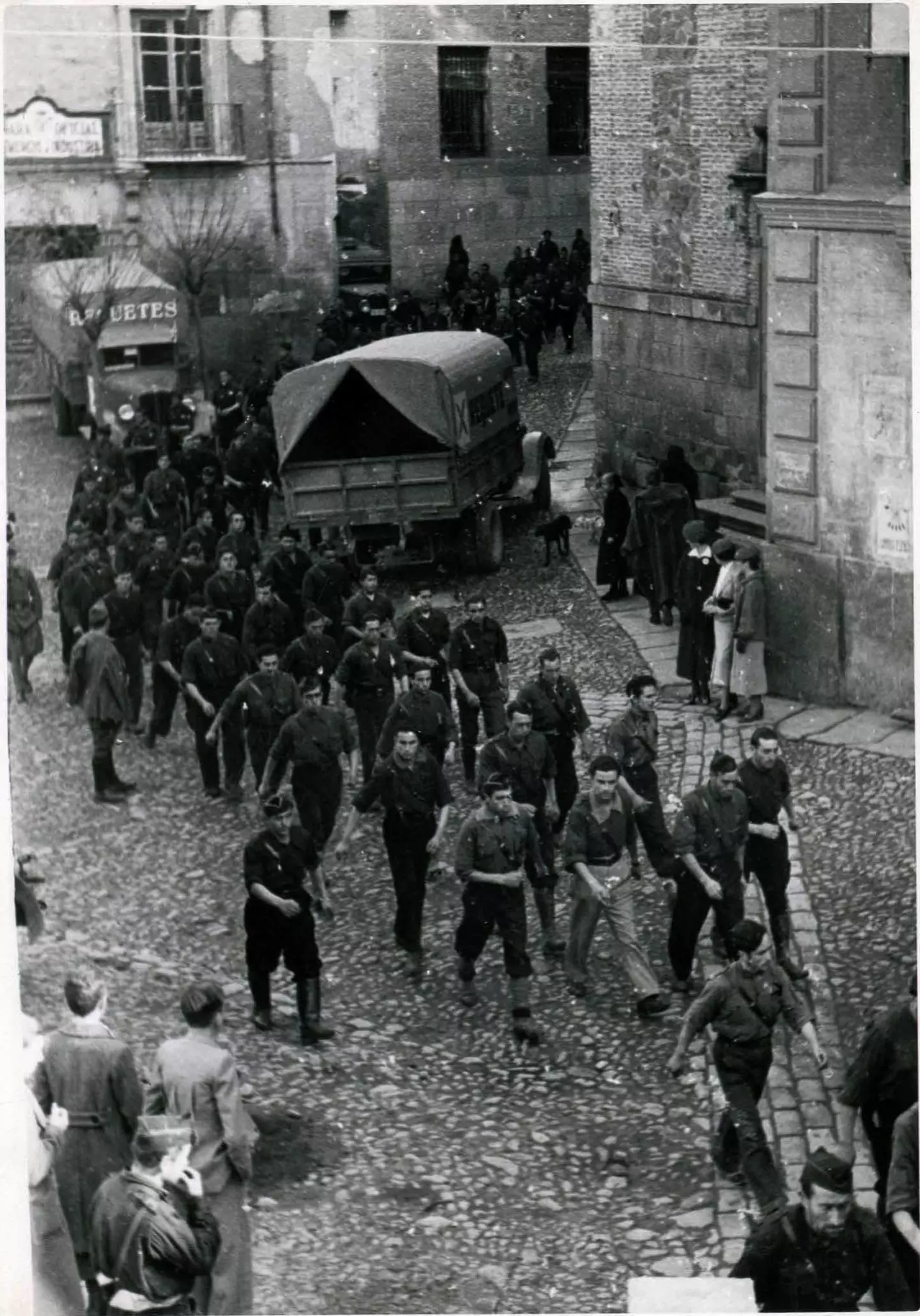 Tropas requetés por la plaza de San Vicente en Toledo, ciudad donde en noviembre de 1936 se estableció Radio A-Z / Foto: Presse Illustrationen Hoffmann. Biblioteca Nacional