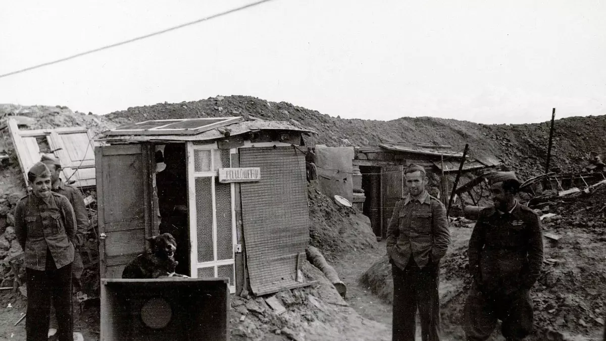 Probando unos cohetes de propaganda en el Palacio de Valderas, en Leganés, donde se estableció la central de Radio A-Z y la compañía de “locutores de trinchera” tras abandonar Toledo / Foto: Biblioteca Nacional de España