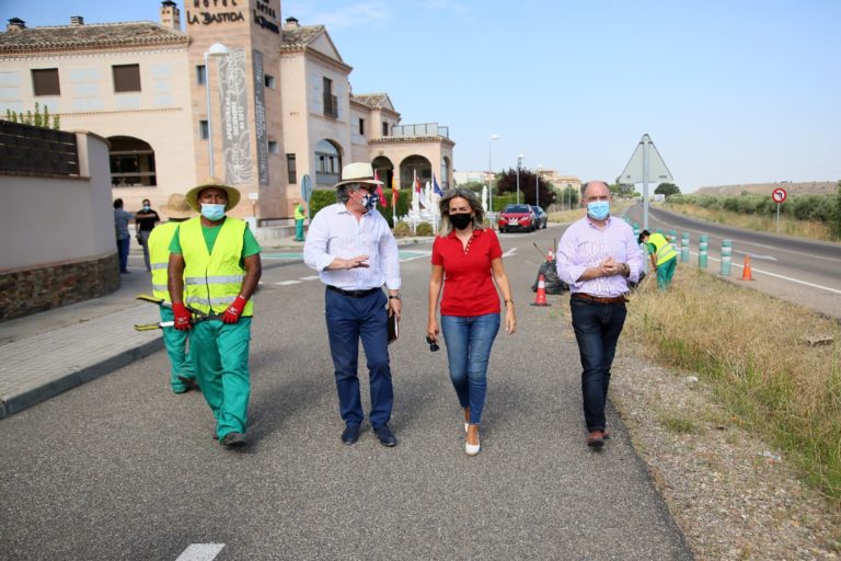 Este anuncio ha tenido lugar durante la visita de la alcaldesa y el edil a la cuadrilla de trabajadores y trabajadoras que ejecutan desbroces y tareas de limpieza en la CM-4000, a la altura del Hotel La Bastida, donde realizan el adecentamiento de la mediana que separa esta vía con los accesos a la urbanización. En esta actuación participan seis peones y un oficial y está previsto que las labores se prolonguen hasta el próximo viernes.