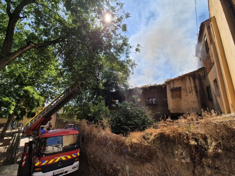 El incendio en una casa de la calle Zarzuela de Toledo provoca su derrumbe, sin daños personales