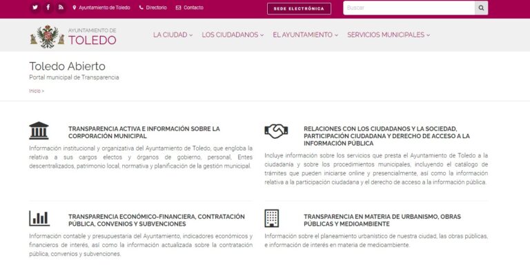 Uno de estos cuatro bloques es el de ‘Transparencia activa e información sobre la Corporación municipal’ donde la ciudadanía encontrará información institucional y organizativa del Ayuntamiento de Toledo.
