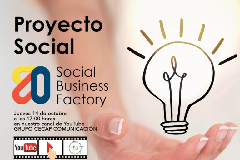 Este jueves, 14 de octubre, tendrá lugar la presentación online para dar a conocer el 'Proyecto Social Business Factory', una iniciativa del Ayuntamiento de Toledo y del Grupo de Entidades CECAP para promover el emprendimiento de personas con discapacidad o desempleados con especiales dificultades de acceso al mercado laboral. La cita será a las 17.00 con acceso libre a través del enlace: https://youtu.be/3VqTtg8fmPs.
