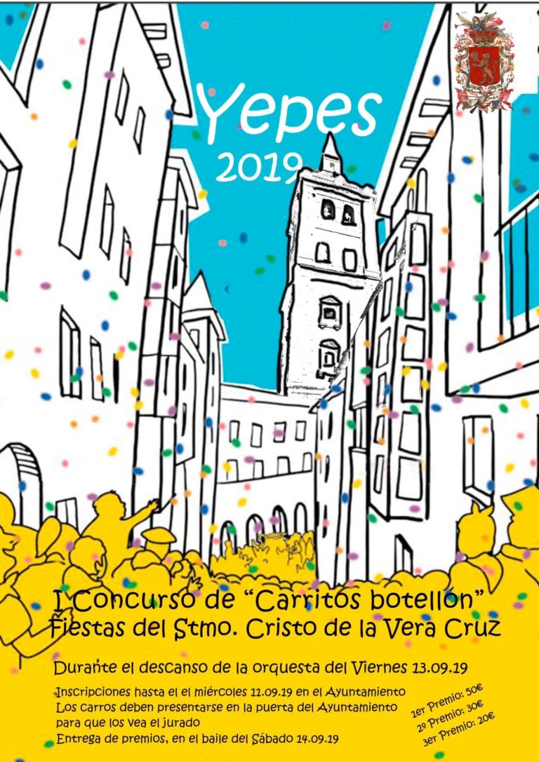 El Ayuntamiento de Yepes ha organizado para el próximo 13 de septiembre un concurso de diseño de "carros de botellón" con motivo de la celebración de la Feria y Fiestas del municipio toledano. Los tres mejores diseños de los carros con los que las peñas suelen transportar sus bebidas durante estos días festivos serán premiados con 50, 30 y 20 euros.