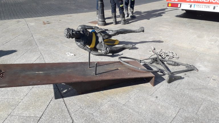 Rueda señaló que lo "primero" que hizo el Ayuntamiento fue retirar la imagen dañada para proceder a guardarla en "condiciones de seguridad" en las dependencias municipales. "La alcaldesa se puso en comunicación inmediata con Bahamontes para asegurarle que se hará todo lo posible, todo lo que esté en nuestra mano para recuperar la escueltura lo antes posible", aseveró el concejal.