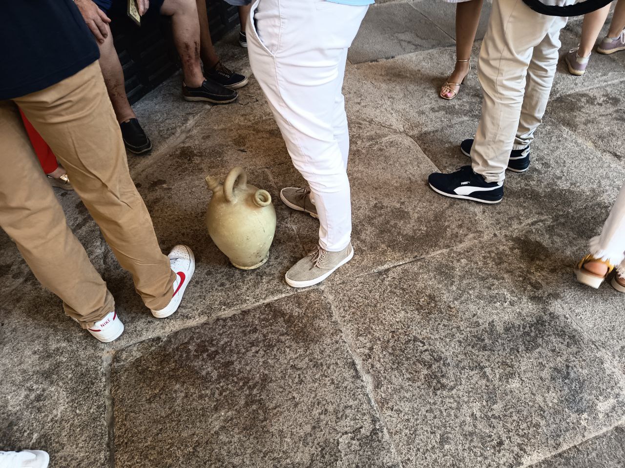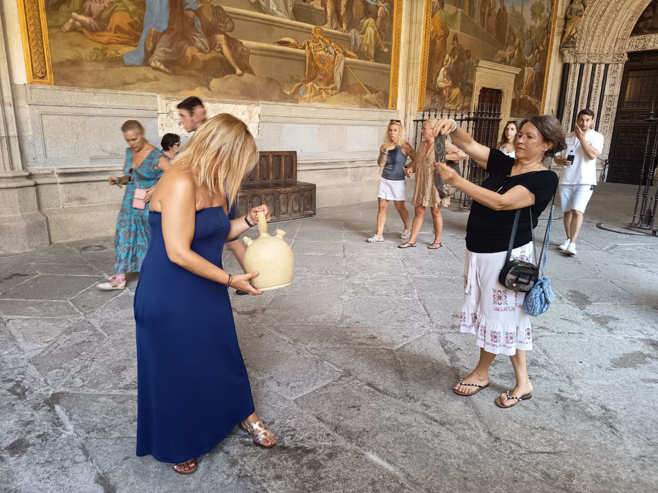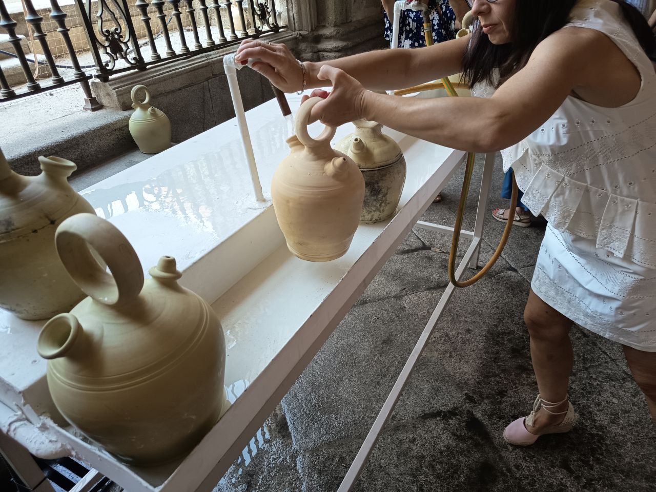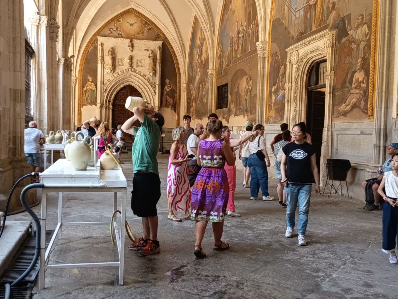 Las altas temperaturas no han frenado a los cientos de toledanos, toledanas y visitantes que han acudido a celebrar a la patrona de la ciudad, la Virgen del Sagrario, con la querida tradición de beber 'agua de la Virgen' de los botijos dispuestos para ello en el claustro de la Catedral.