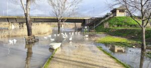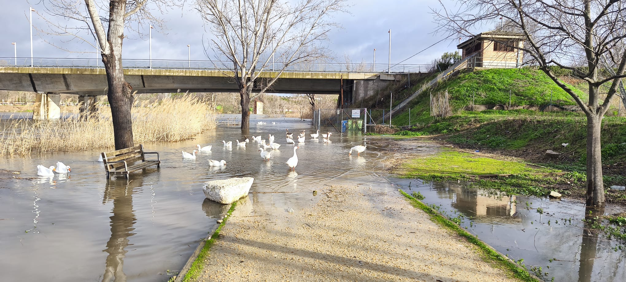 La crecida es palpable en distintas zonas de la ciudad, tal y como puede apreciarse en las imágenes que ilustran este artículo y que se han tomado este mismo viernes. La cota del río alcazaba ya los 449,24 metros respecto al nivel del mar, por encima de los 448,90 que marca el límite del nivel rojo.
