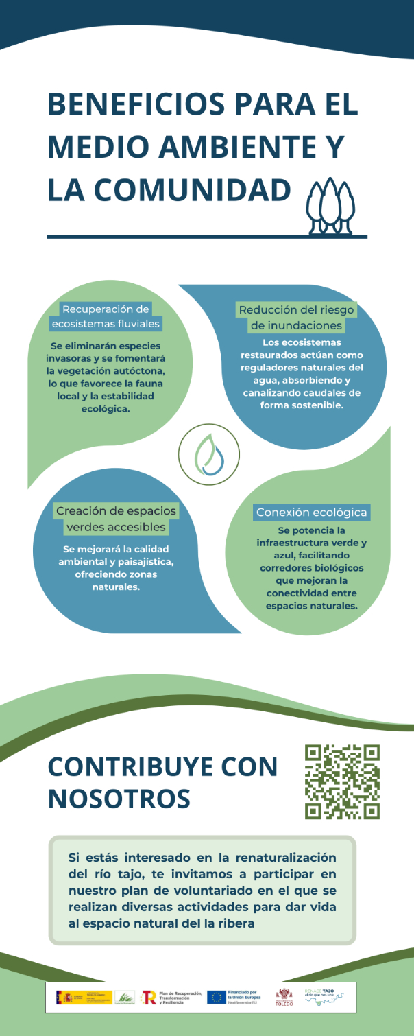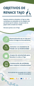 A través de paneles interpretativos, permite conocer tanto la evolución histórica del río como las actuaciones actuales y futuras orientadas a su recuperación ambiental, paisajística y social, con el objetivo de acercar a la ciudadanía el valor natural, cultural y patrimonial del Tajo y fomentar una mayor concienciación sobre su conservación.