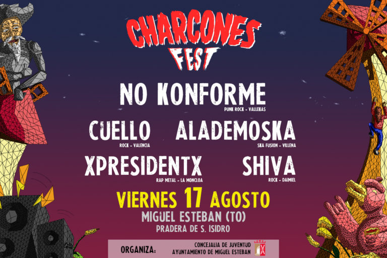 Por su parte, Xpresidentx llevará al Charcones un rap metal que mezcla "la música y la sátira en todo un espectáculo cada vez que dan un concierto". "Toman su nombre de los expresidentes del gobierno, tienen letras críticas y su música es contundente", explica uno de los impulsores del festival al tiempo que resalta la influencia en Xpresidentx de grupos como Def con Dos, Sindicato del Crimen o Narco. El grupo, que llega desde Madrid, hará en Miguel Esteban una parada dentro de la gira de presentación de su disco 'Resacón en Eurovegas'.