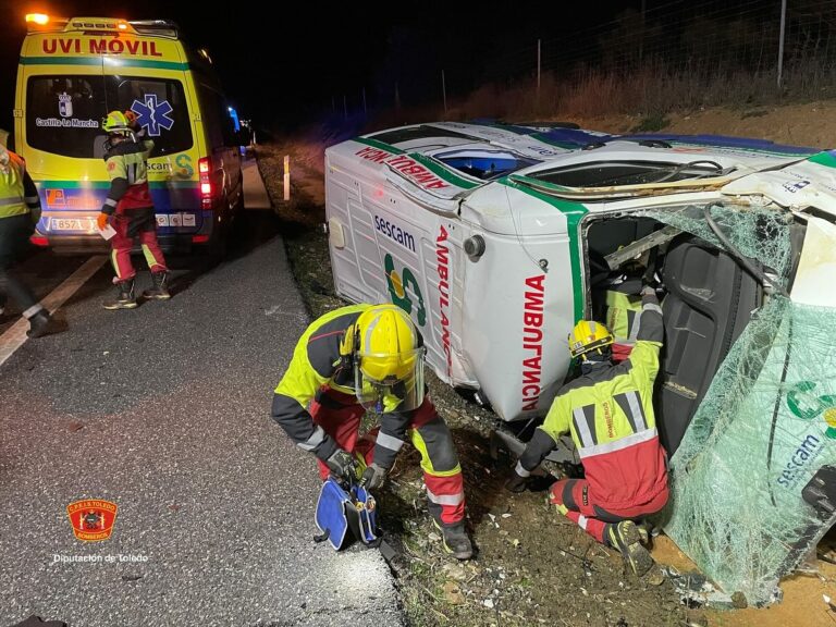 Una ambulancia ha volcado en la A-5 (sentido Extremadura), a su paso por el término municipal de Lucillos (Toledo), resultando herido su conductor, un hombre de 52 años. Posteriormente, un vehículo ha colisionado contra la ambulancia.