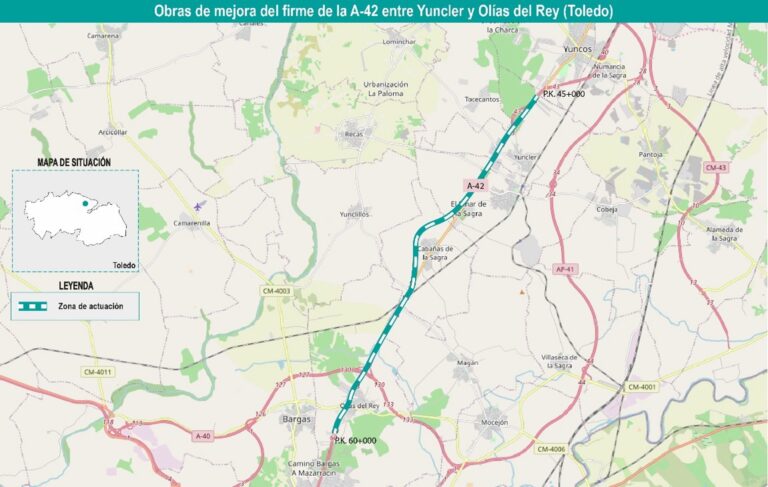 La actuación contempla la rehabilitación superficial completa, entre los municipios de Olías del Rey y Yuncler, a lo que se suma la rehabilitación estructural concentrada en los tramos del tronco con un peor estado estructural, en ambas calzadas, según ha informado el ministerio en nota de prensa.
