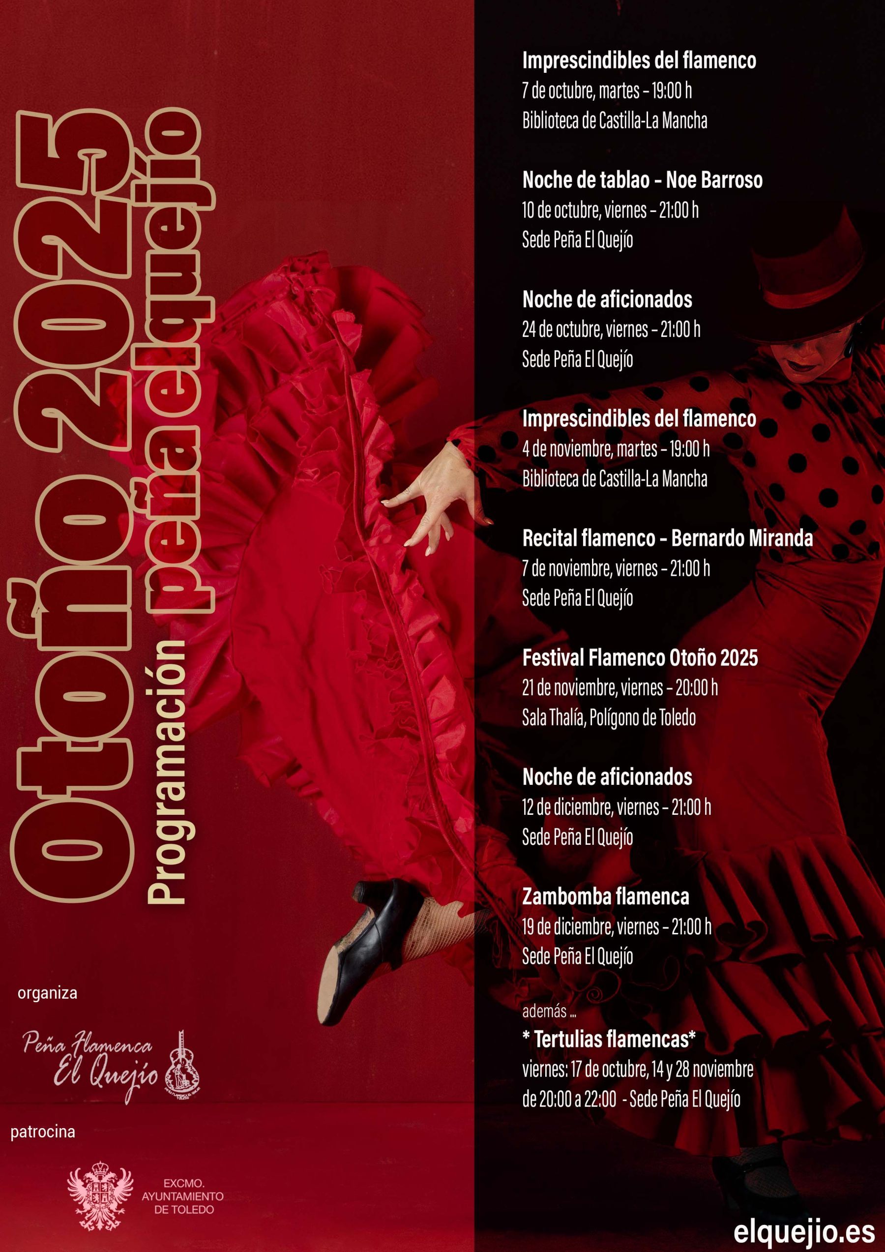 La programación consolida el compromiso didáctico de la peña con sus encuentros 'Imprescindibles del flamenco', en colaboración con la Biblioteca de Castilla-La Mancha. Estas citas, que han demostrado ser "fundamentales para la divulgación del arte jondo", se reanudan el martes 7 de octubre a las 19:00 h en la Biblioteca, y tendrán una segunda sesión el martes 4 de noviembre.