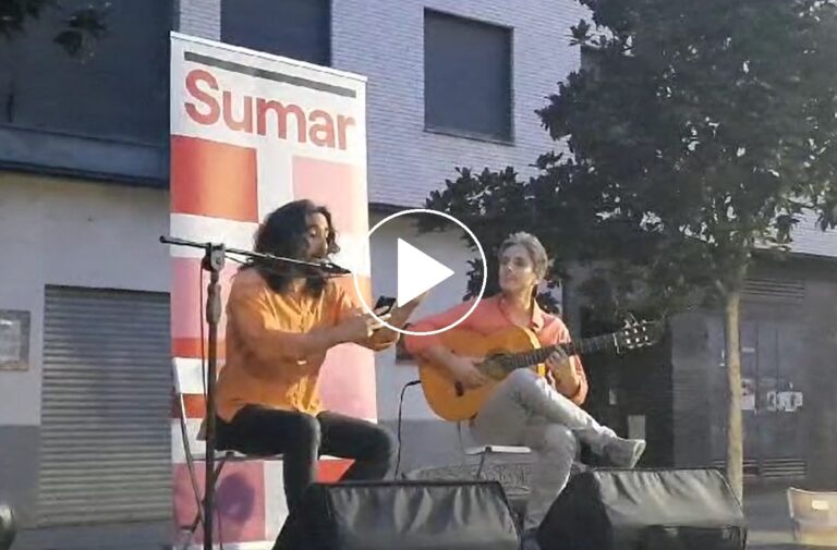 En él también estuvo el cantaor toledano Diego Mejías -exconcejal de Ganemos en el Ayuntamiento de Toledo-, quien dedicó un fandango flamenco al barrio talaverano de Patrocinio -en el que se celebró el acto- para animar a votar el 23J a la formación de Yolanda Díaz. La letra, que acabó cantando con el público presente, dice así: