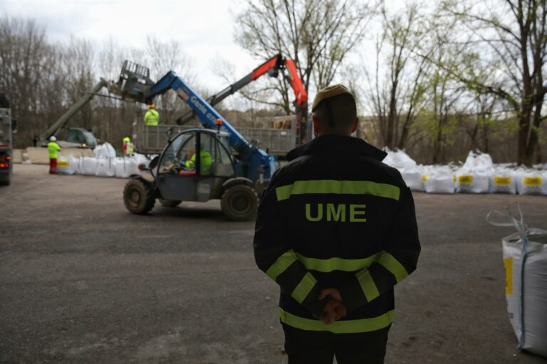 La UME construye un dique para evitar que el Tajo inunde el Hospital de Parapléjicos