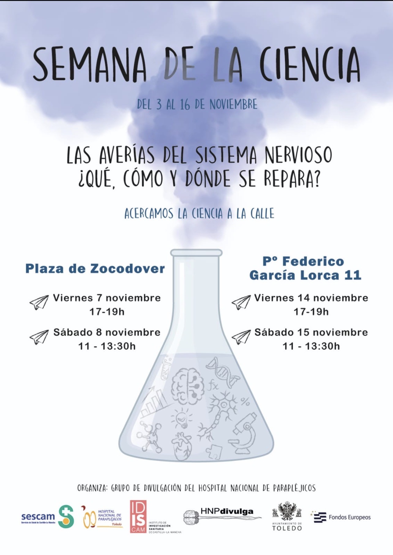 El Grupo de Divulgación Científica del Hospital Nacional de Parapléjicos, centro perteneciente al Sescam, renueva su iniciativa de acercar a los ciudadanos el mundo de la investigación neurocientífica con motivo de la Semana de la Ciencia, que se celebra del 3 al 16 de noviembre.