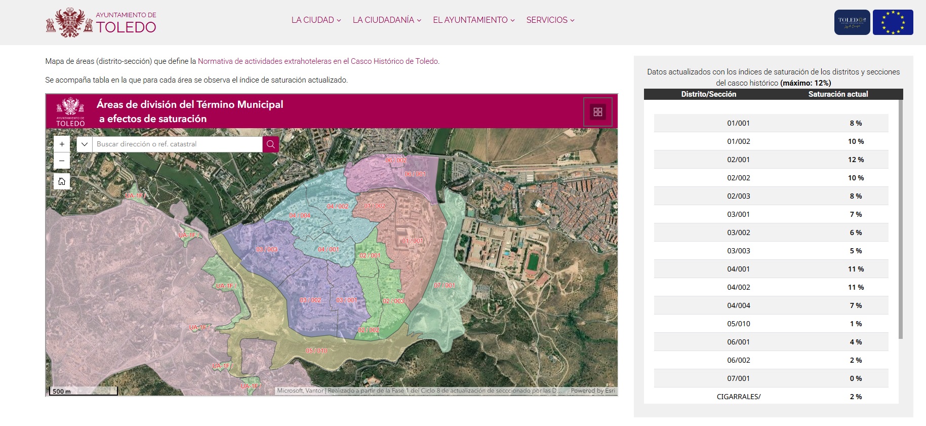 La zona con mayor saturación es la sección censal 01/002, cuyos límites se establecen en la plaza de Zocodover y que abarca vías como la calle Sillería, Núñez de Arce o Alfileritos, entre otras. Según la web municipal, el límite en este distrito ya se situaría en el 12%, aunque no se precisan decimales en los datos que se ofrecen.